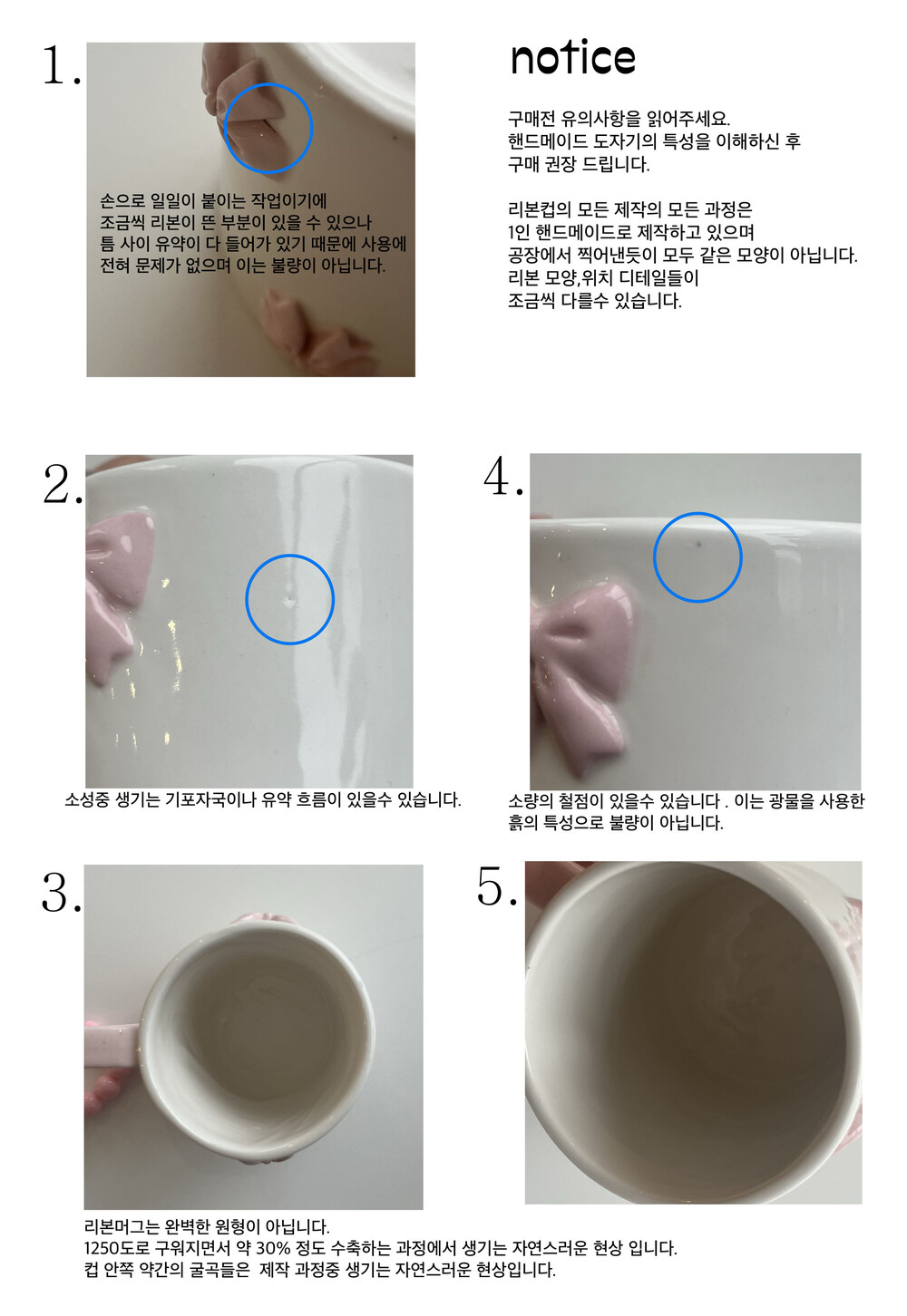 02.유약을 시유하는 공정에서 유약의흐름자국이나,유약 집게 자국,유약의 두께의 차이,흙의 질감,흙의 철점,소량의 기포자국이 보일수 있으나